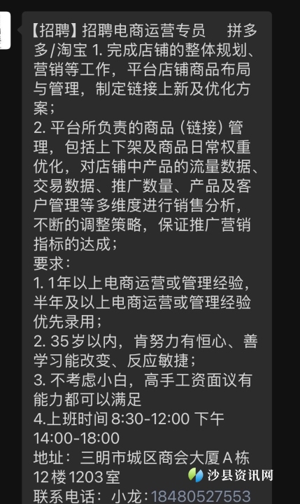 【招聘】招聘电商运营专员 拼多多/淘宝 1.完成店铺的整体规划、营销等工作,平台店铺商品布局
